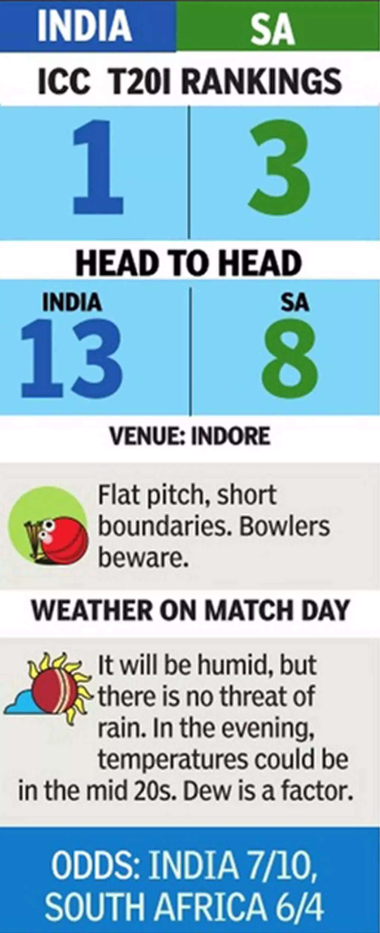 INDORE: Just a few hours after recording their maiden T20I series win at home against South Africa in Guwahati, India will look to achieve their first-ever clean sweep against the Proteas in the inconsequential third and final T20I at the Holkar Cricket Stadium here on Tuesday.