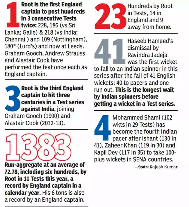 Root is two short of scoring 1400 runs this calendar year at a phenomenal average of over 70, and with two Tests remaining he looks poised to score plenty more. It was a special moment for the local lad to reach three figures in front of his parents and a boisterous home crowd. The entire stadium was on its feet to applaud Root, who flicked Ishant Sharma to the mid-wicket fence to reach the mark.