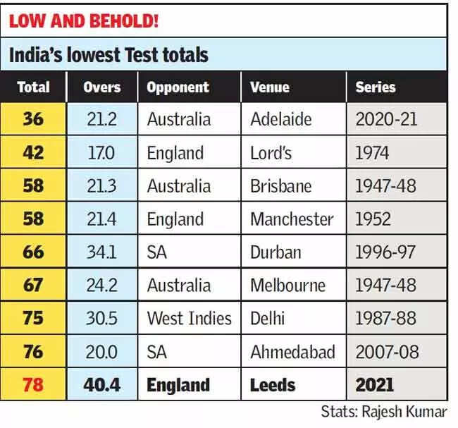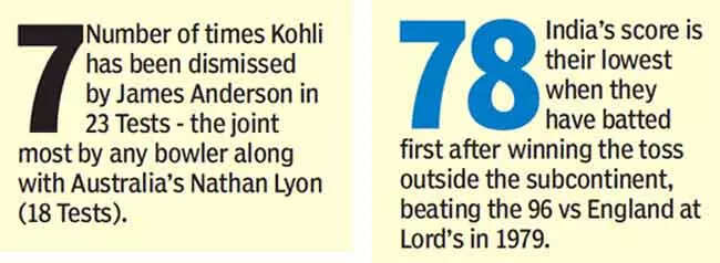 It was India's lowest score in England since they were shot out for 42 at Lord's in 1974 and it was the ageless James Anderson again who did the bulk of the damage in his opening spell.