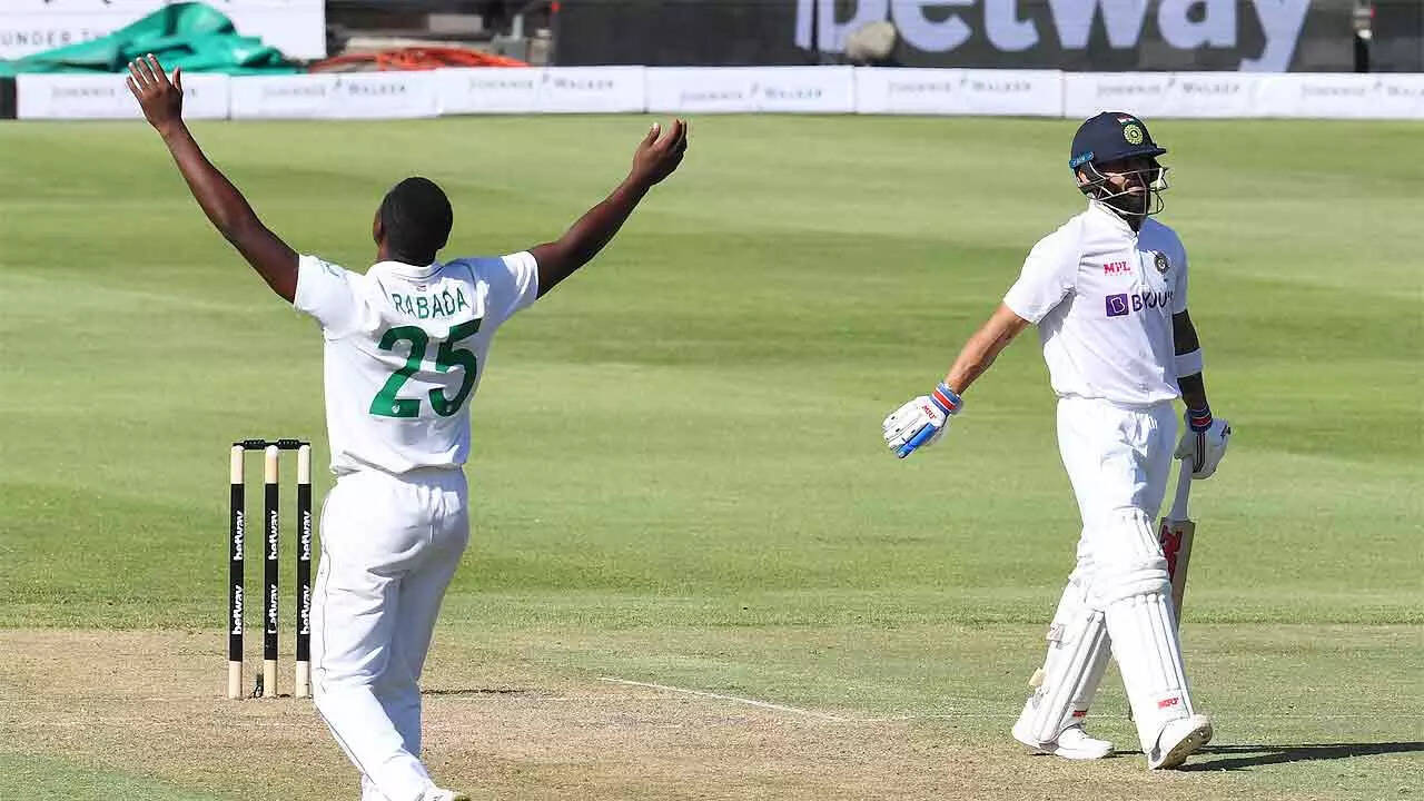 <p>Kagiso Rabada, playing in his 50th Test, took four for 73 and eventually won an enthralling duel with Kohli when the Indian captain was ninth man out. Left-arm fast bowling discovery Marco Jansen took three for 55. (AFP Photo)</p>5/10:Kohli defies SA bowlers