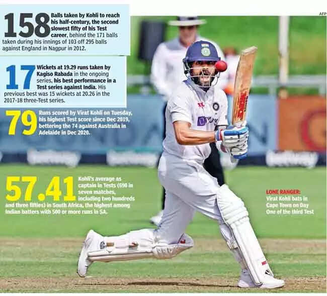 <p>Without a century in his previous 14 Tests, Kohli was clearly determined to make a major contribution on a day when most of his teammates struggled. Refusing to be tempted into playing any rash shots, Kohli was content to leave the majority of the balls he faced early in his innings. It took him 15 balls to score his first runs, a sweetly-timed cover drive for four off Marco Jansen. (Reuters Photo)</p>7/10:Rabada eventually trumps Kohli