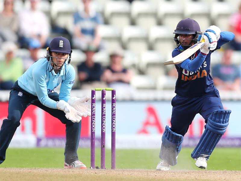 Mitahli and Harmanpreet Kaur (16) both batted slow and it resulted in required run rate shooting over six per over. Harmanpreet was dismissed when she missed a reverse sweep off Knight.