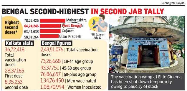 KOLKATA: Even though the state government claimed it had received 25 lakh vaccine doses for July — to be used at government and Kolkata Municipal Corporation (KMC)-run vaccination centres — the civic body said the drive could slow down across its clinics this week owing to inadequate stock.