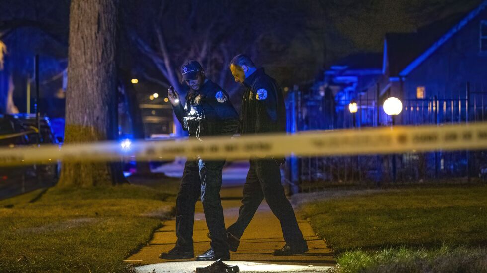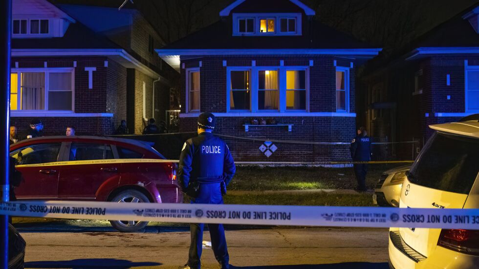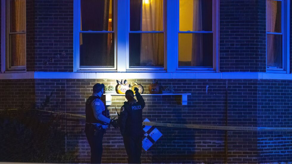 Outside the home, a bloody shoe was left on a sidewalk, and a bloodstain was next to a red car parked on the street, according to a Sun-Times photographer.
