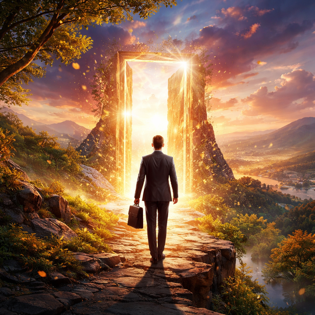 <p> A symbolic door opening toward new possibilities.</p>