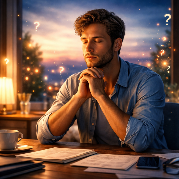 <p> A person experiencing quiet peace while making an important decision.</p>
