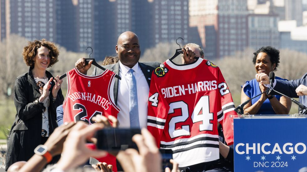 Democratic National Committee chair Jaime Harrison came to Chicago a day after Chicago’s winning bid was announced by the DNC, which scrutinized offers from Chicago, Atlanta and New York.