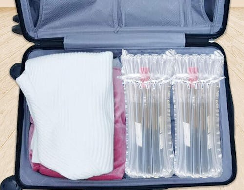 These wine bottle protectors make traveling with vino a lot less of a high-risk operation. Inflatable plastic sleeves create a sturdy air cushion around each bottle, absorbing impact and preventing cracks or leaks in transit. It’s full-coverage protection without the extra bulk or weight. Durable, reusable, and easy to inflate, they pack flat between trips and pop back into shape when you need them.