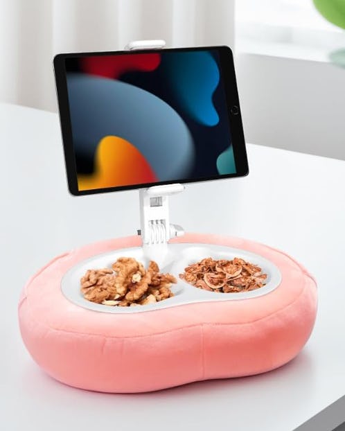 This multitasking device stand makes lounging both stylish and efficient. A 360-degree rotating clamp and 180-degree folding arms allow you to find the perfect viewing angle for your tablet, while a detachable, food-grade bowl is ideal for storing snacks. It features two compartments — use one side for treats and the other to store your drink — as well as a side pocket for extras, such as your phone and remote. And don’t worry if you spill anything, because the removable cover is machine-washable.