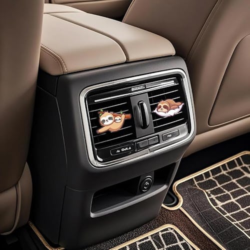 These cutes slothy car air fresheners are an easy way to make you and your passengers smile when you’re on the road. Made from a durable metal alloy with smooth, polished detailing, they easily clip onto air vents to provide your ride a burst of freshness. Just pop a fragrance piece into their bodies, snap them on, and let fresh air circulate through the vehicle for a scent that lasts for weeks.