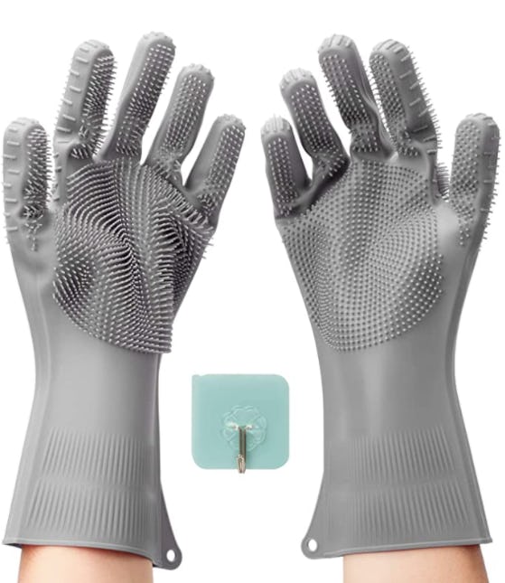 These reusable gloves are made with silicone and have tiny bristles along the palms and backs that'll make doing the dishes a lot easier (and faster). You can toss your sponge and use them to clean other surfaces, too, like toilets, tiles, your car, and more. Then, they can be thrown into the dishwasher for a cleaning of their own.