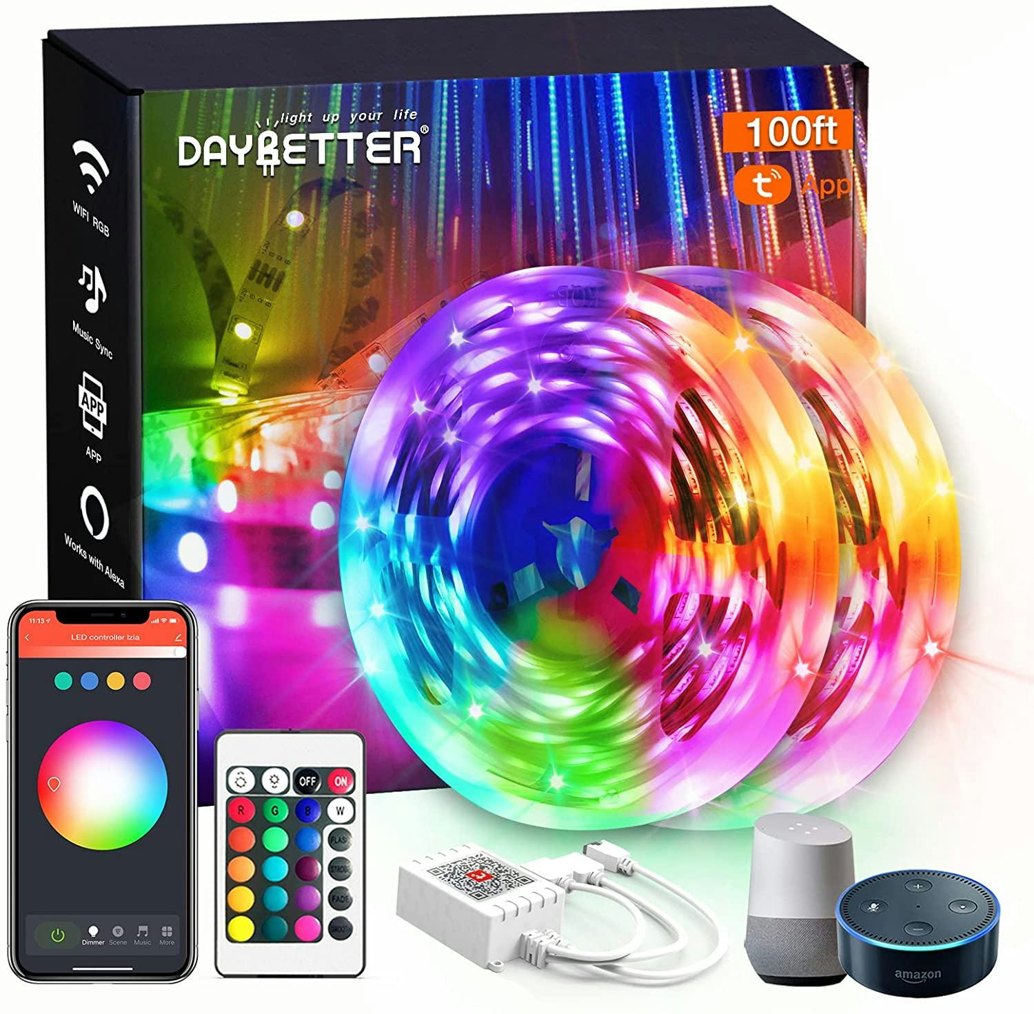 You can design lighted interiors easily and for almost no money by using this stick-on lighting strip. Just cut the length you want, peel away the backing, and press a length of light behind the headboard or TV, inside cabinets, along counters, or anywhere you can think of. Then, connect them to the controller to choose a color. You can change the color with the remote, too.