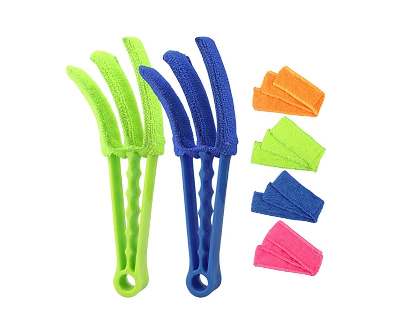 Dusting your window blinds with a rag is time consuming, but this dusting kit lets you whip through that task quickly. One swipe does three rows easily, and you can throw the sleeves in the wash to clean them. It works great on car and air conditioning vents and comes with a spare set of sleeves.