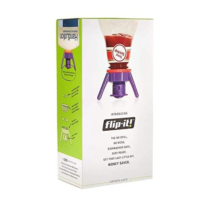 Replace the lid to your ketchup, honey, maple syrup, or lotions with this clever inverter lid and you'll never have waste your time shaking product down the bottle so you can get it out. This lid lets you store the bottle upside down so that gravity keeps the product at the bottom for easy use.