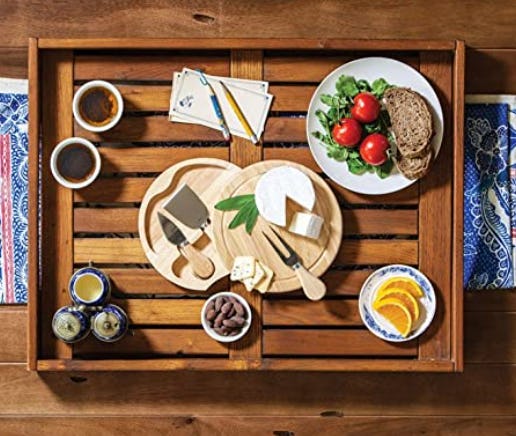 Swivel the cutting board on this clever cheese board and you'll find a set of utensils stored underneath so your picnic is never without a fork, cheese cutter, or spreader. The cutting board itself has a moat so the juices from your roasted meats won't drip onto your picnic blanket, and the entire package is at once easy to cart along and makes for an elevated charcuterie.