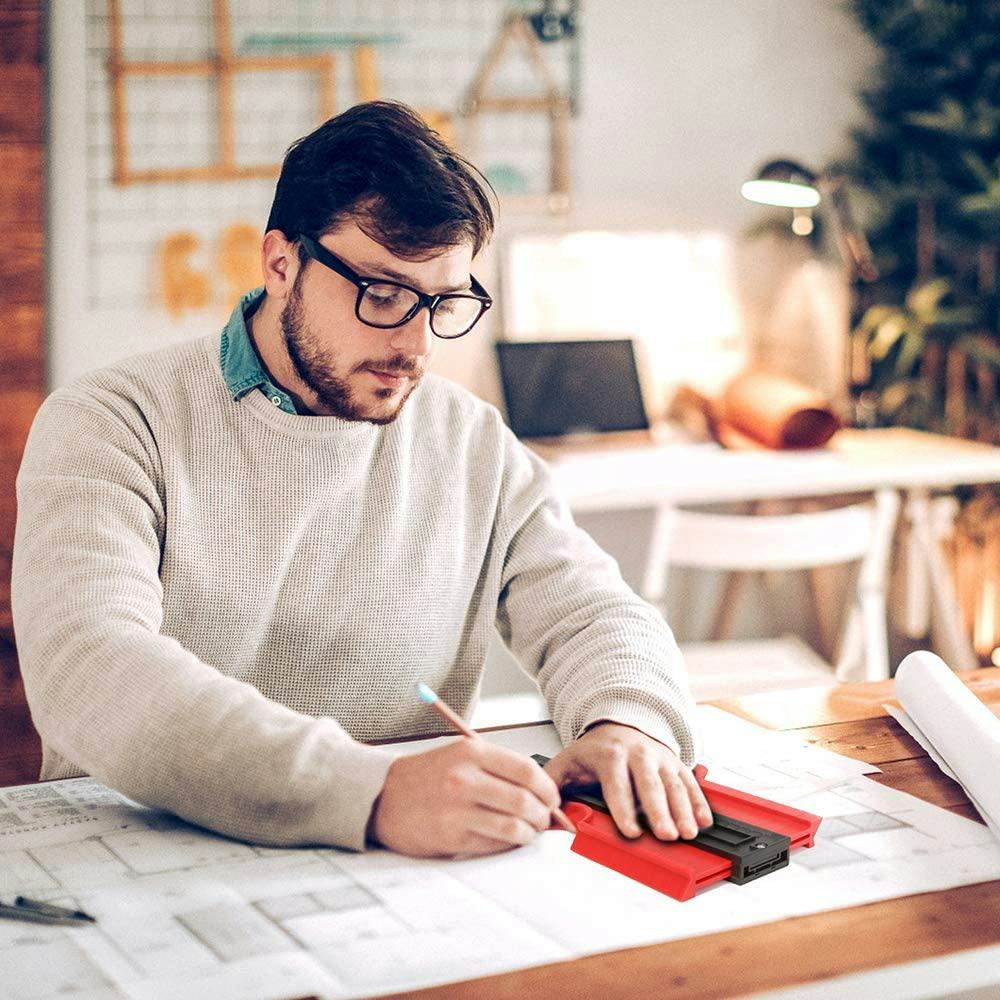 If you want to duplicate the shape of something irregular so you can draw it or create a template to cut around it, this handy gauge will make that so much easier. Just press the edge of the gauge to the shape you want to copy — a corner angle, post, or whatever — and the pins will conform to its shape and stay that way so you can trace the shape to paper, wood, flooring, or whatever you are working with.