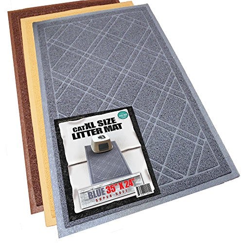 Phthalate & BPA Free. XL Size Cat Litter Mat - Mesh Mat Catches Litter - Repels Odor & Liquid - Litter Free Floors. Extra Soft, Easy Clean. iPrimio Brand. Blue Gray Color.