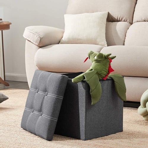 This perfectly sized storage ottoman that hides blankets, toys, and books