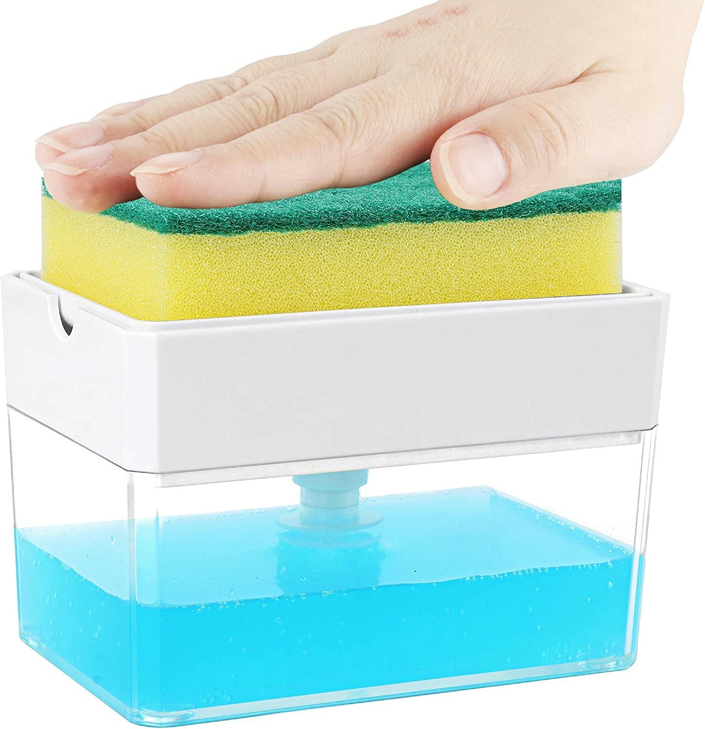 Thanks to this sponge holder, doing the dishes isn't so bad. The container itself holds a sponge of your choice — and when you need to use it, you can push the sponge down and infuse it with soap. That's because the soap from the bottom container will be pushed up into the sponge itself.