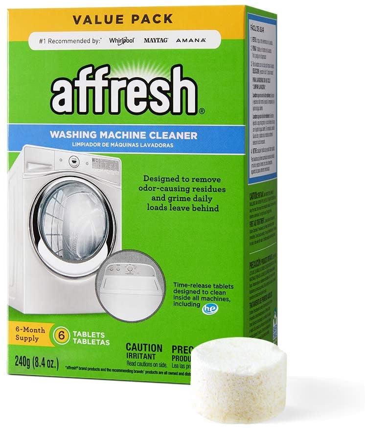 If your washing machine is beginning to smell a bit mildewy (totally normal), go ahead and throw one of these cleaners inside. During the cleaning cycle, the tables will foam and help remove debris that could cause unwanted odor. (Just make sure there are no pieces of clothing in the wash during the cleaning process.)
