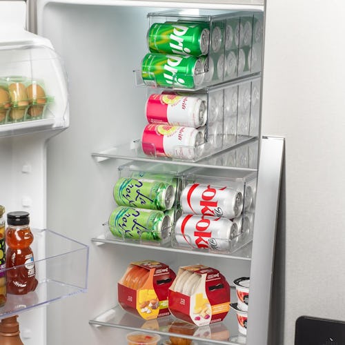 This soda can dispenser is another great tool for implementing the advice of Jane Stoller of Organized Jane. They reduce the clutter and footprint of soda and beer cans while making it easy for people to grab one. The cans load from the top and roll to the front, so you can keep them filled without reorganizing the fridge. They are stackable, too. This is a two-pack.