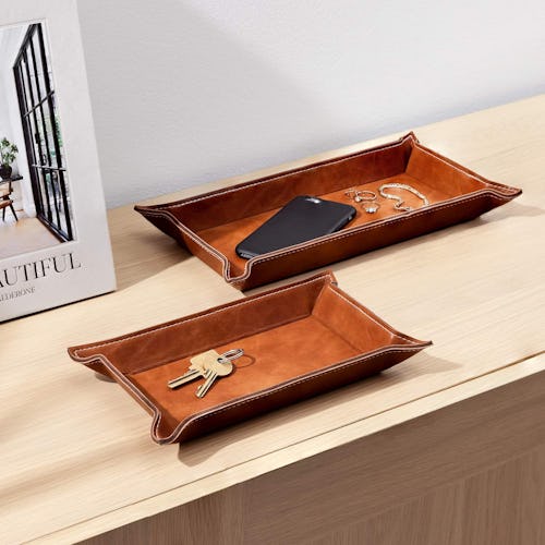 It is easier — and quite stylish — to execute Marie Jackson of Organized Marie’s entryway advice if you have an entryway table. Simply set this tray for keys there and drop your keys, sunglasses, watch, and other items you tend to shed when you walk in the door there. The faux leather looks good there, empty or corralling your small EDC gear. Choose from five colors.
