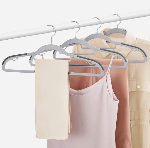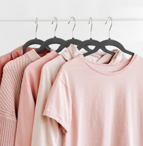 According to professional organizer Melissa Schultz, owner of MYS Organizing, there are some nonnegotiables with hangers. “Always choose hangers with a swiveling hook, and stay consistent with an easy-to-find color so they match!” These swivel-hook velvet hangers in black fit the bill perfectly. But they do come in nine colors if you want to add a punchy shade to your closet.