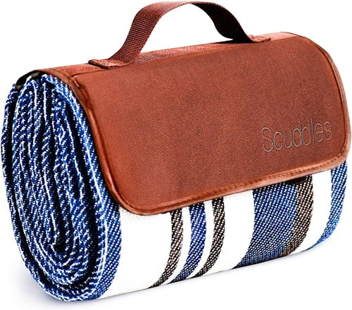 At 60-by-60 inches, four adults can comfortably sit on this water-resistant picnic blanket. The mat rolls into itself and has a handle, so it turns into its own little carrying bag. If you need something bigger, choose from seven sizes and pick your favorite color from the several offered.