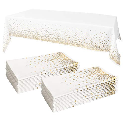 White Plastic Fabric Rectangle Tablecloth - 54 X 108 | Gold Dot Waterproof Disposable Tablecloth | White Table Cloth | Dining and Kitchen Table Cover | Tablecloths - Picnic, and Outdoor Party