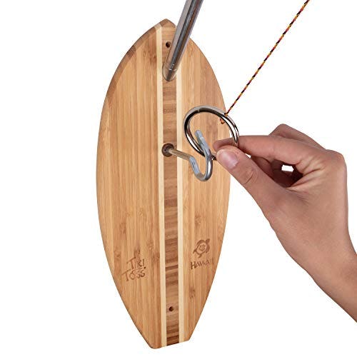 Tiki Toss Ring Toss Game for Adults & Kids - Hawaiian Edition - Deluxe, Outdoor or Indoor, Hook and Ring Games with 5 Foot Telescoping Pole and String
