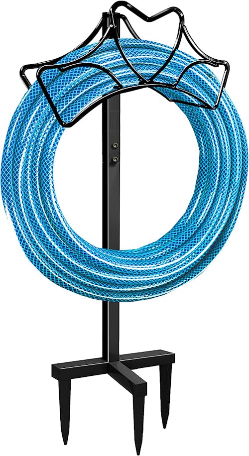 This freestanding garden hose holder stand for up to a 150-foot hose