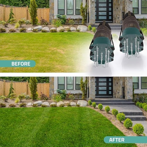 These lawn aerator shoes are built with three adjustable straps on each shoe, allowing them to fit on any size foot. Each shoe also consists of 13 metal spikes so you can effectively aerate your lawn. They’re anti-corrosive and built to last, so plan on having these guys for a long time.