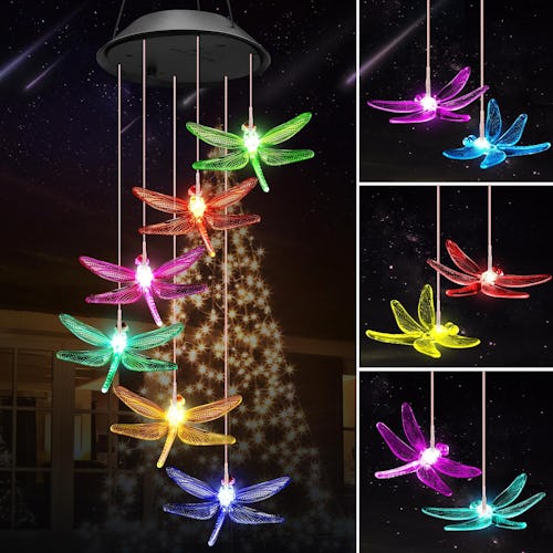Hang this solar wind chime from a tree, patio, or anywhere that gets direct sunlight for six to eight hours a day. Once charged, the beautiful dragonflies light up and constantly change colors. They bring a bit of warmth to any outdoor space while providing ambient light. Aside from dragonflies, you can also get these chimes in butterflies, hummingbirds, and even a gorgeous moon and stars display.