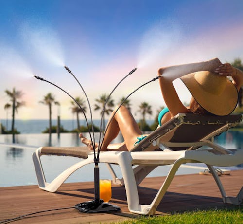 Beat the heat with this standing mister that has a weighted base for sturdiness. It has four brass misting nozzles that can be adjusted to spray wherever you want. This mister is built with a dependable anti-leak design and makes a great accessory for sitting poolside or simply misting an outdoor garden.