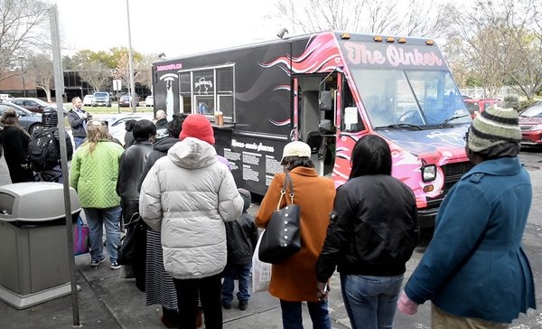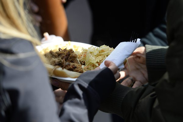 On March 14, the two pulled up into the parking lot of the shelter with their Stomp/Chomp/Roll food truck (called "the Oinker"), and began serving the kind of food homeless women and children only dream of. Made-from-scratch baked ziti, barbeque smoked for 12 hours and hand pulled, homemade macaroni and cheese, salads, cold slaw and special sauces and dressings.