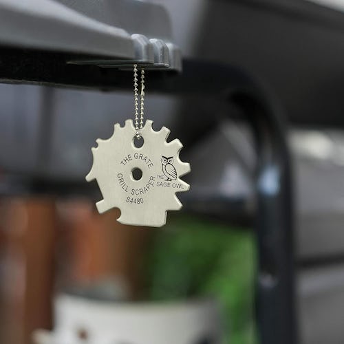 Designed with 13 grooves (to clean a wide variety of grills), this bristle-free grill scraper removes burned on bits in minutes without the worry of losing bristles in your food. It's made from solid brass, and you can safely use it on porcelain as well as Teflon-coated grills.