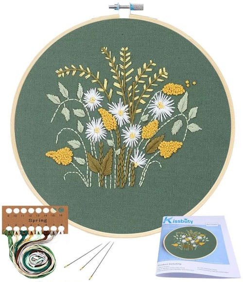 If you've ever been curious about learning how to sew embroideries, this kit is a great place to start. Each order comes with thread, needles, a bamboo hoop, and one patch of fabric with a design stamped on it, while the screw at the top of the hoop ensures that the fabric is pulled taught. Grab it in more than 20 different patterns.