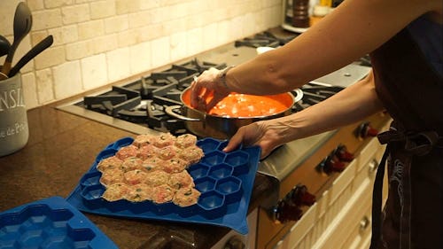 This tray that molds 32 meatballs in less than 30 seconds