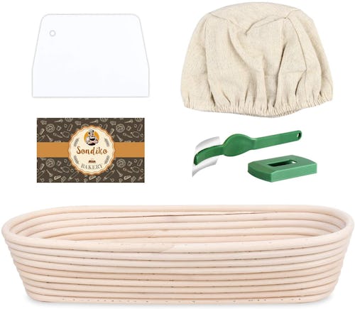 Bakeries and grocery stores get those gorgeous patterns on their sourdough loaves by using a proofing basket like this one. It's made from 100% natural rattan cane that won't produce splinters, and each order comes with a liner cloth, dough scraper, and bread cutter.