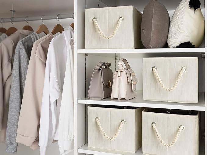 These large storage boxes are a go-to organizer for any closet space and can hold everything from bulky clothing to linens, accessories, or shoes, with plenty of space inside. Chic rope handles let you move them around as needed, and the sides are sturdy and hold their shape. These instantly make any space look more organized, and when not in use, they fold flat for storage.