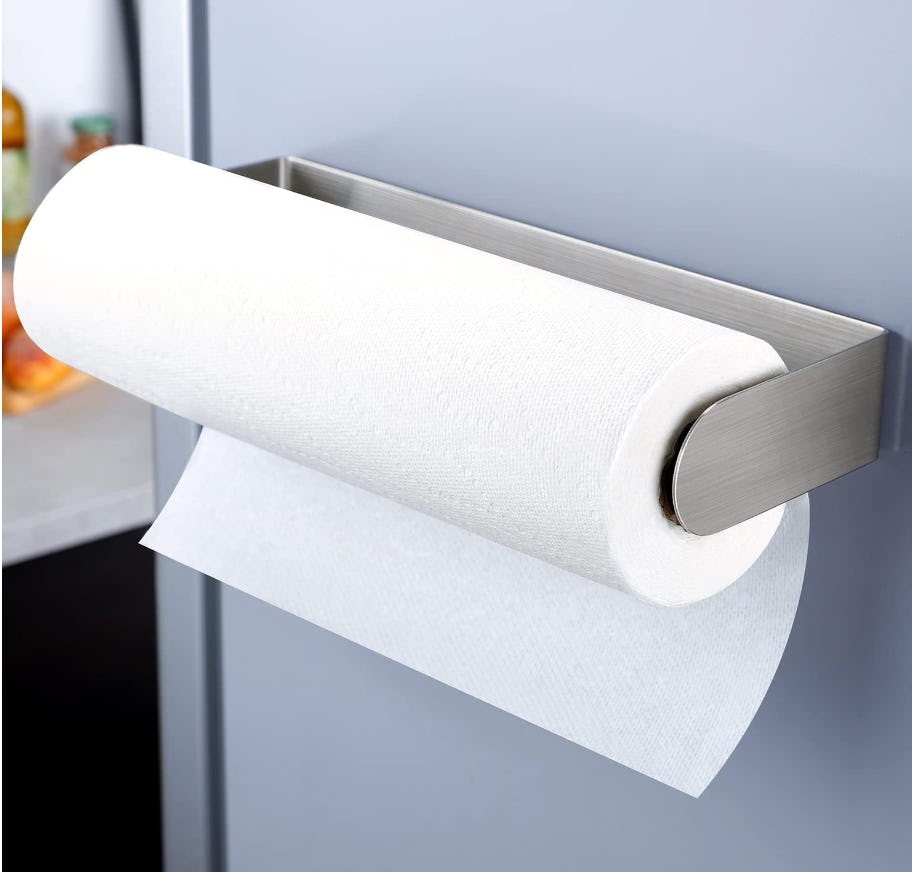 The more items that live off your countertops, the better. This magnetic paper towel holder can be stuck on the side of your refrigerator (or microwave, or grill) to create a convenient spot for your paper towels. The nonscratch magnet is strong and it saves space while making it a breeze to tear off your towels.