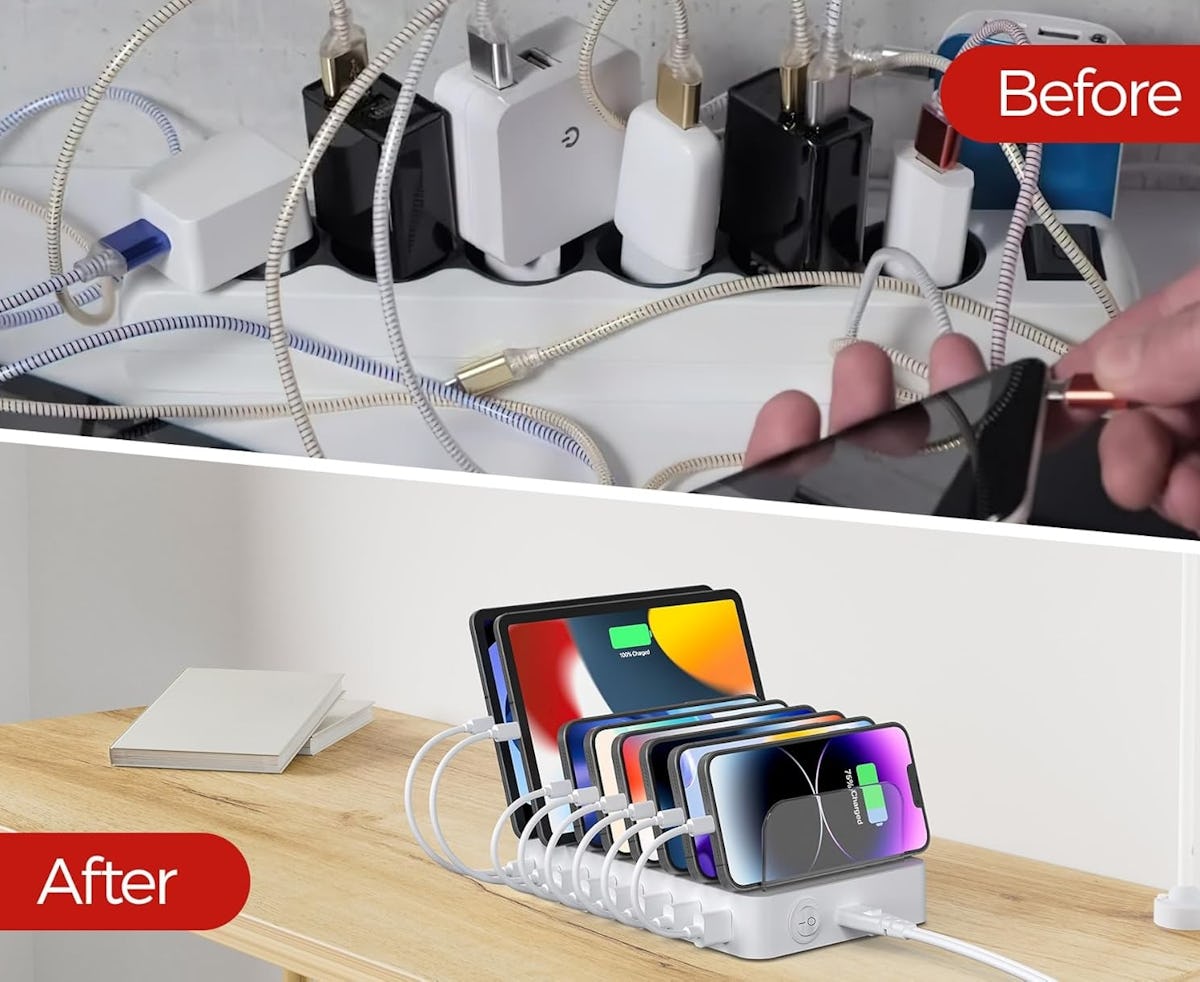 A slew of assorted devices and corresponding chargers can make any room look cluttered. Grab a charging station like this one to give tech items a dedicated home. This one acts as a central hub with six USB-A cables and two USB-C cables. Separated compartments mean you can neatly store up to eight devices at once.