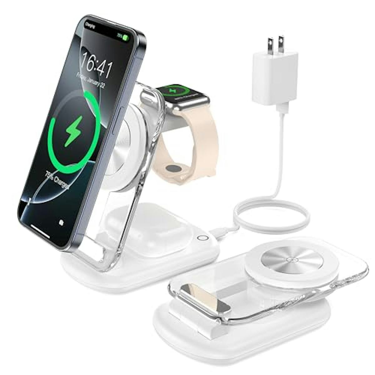 Amazon -Charge your iPhone, Apple Watch, and AirPods all at once with this three-in-one wireless magnetic charger. It’s compact and space saving, with a strong magnetic alignment that locks your phone into place. With everything grouped together and only one cable needed, it's a great way to clear up desk or nightstand clutter.
