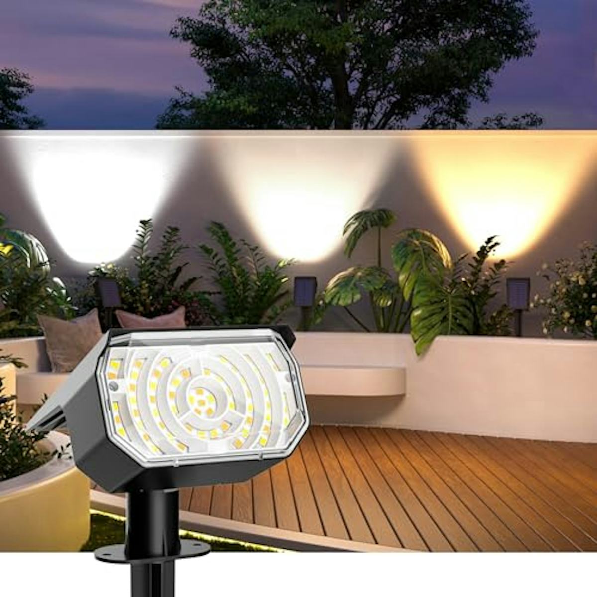 AUDERWIN Solar Spot Lights Outdoor Waterproof IP67, 6 Lighting Modes 60 LED, Landscape Spotlights for Tree Yard Garden House Driveway Pathway(2 Pack)
