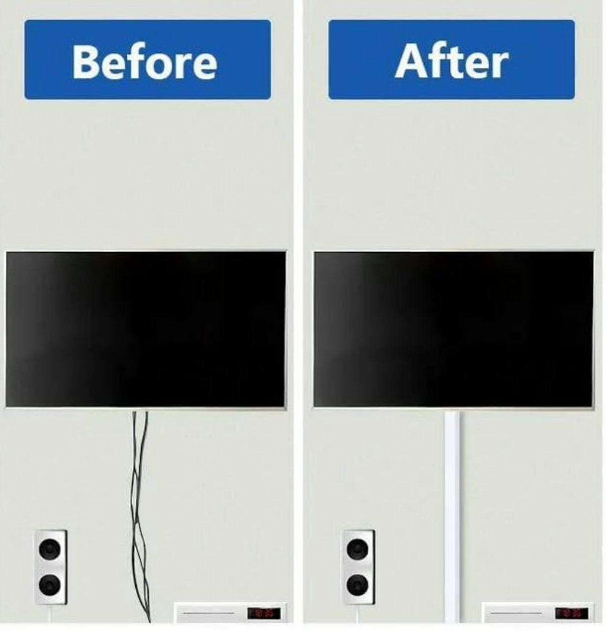 If you have a wall-mounted TV, the cords dangling below can become a visual distraction that downgrades your decor. Luckily, you can keep messy cables safely tucked away with this cord-hiding raceway kit. It creates a sleek, seamless look and can even be painted to match your wall. The snap-on design makes installation fast and frustration free — no tools or pro help needed.