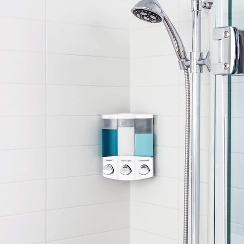 Secure this three-section dispenser to the wall of your shower with the included adhesive and you will solve so many problems at once. It gets rid of the proliferation of shampoo, conditioner, and body wash bottles, dispenses a precise amount of product to cut back on waste, and lets you use economical large bottles of toiletries without having to store them in the shower. It looks elegant and almost 11,000 people give it five stars.