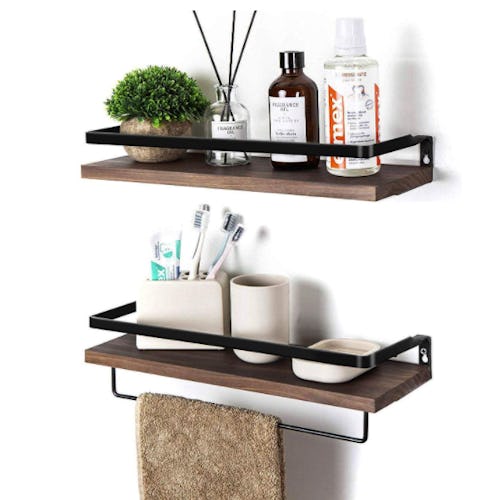 Hang these two floating shelves with an attached towel hook in the kitchen or bathroom to create a handy storage space and turn your spices or lotion into functional décor. They are easy to install, come in five wood-color options, and — according to the 15,000 reviewers who give them five stars — look terrific.