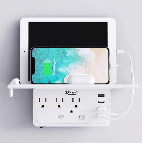 Plug this outlet shelf into any outlet and turn it into a complete charging station for all your gadgets — it even has a built-in night light that turns on at dusk. The surge protector features three AC outlets and four USB ports. What's more, the roomy shelf has channels for cords and holds your phone, tablet, and earbuds.