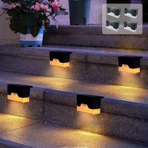 Attach these solar-powered lights to the steps of a dark flight of stairs or to the railing of your deck to create subtle, safe, and charming lighting. They are easy to screw on, charge themselves with sunlight during the day, and come on automatically when the sun goes down. They are waterproof, rugged, and cast a warm glow.
