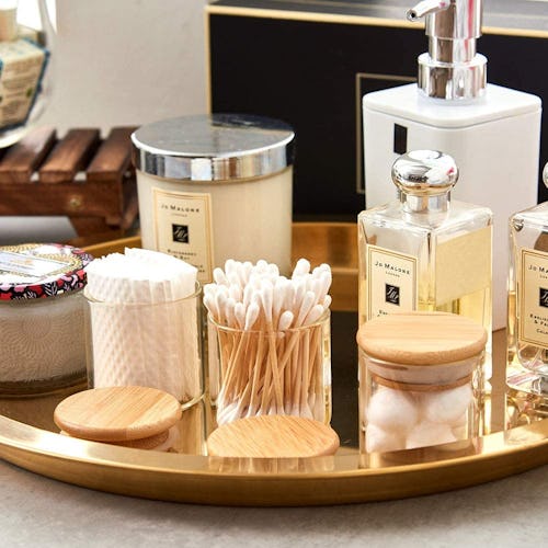 These glass storage jars make it so easy to organize items in the pantry, medicine cabinet, office, and other areas, and you can quickly find what you need at a glance. The 10-piece jar set is made from durable borosilicate glass with bamboo lids and they come with chalkboard stickers so you can label everything.